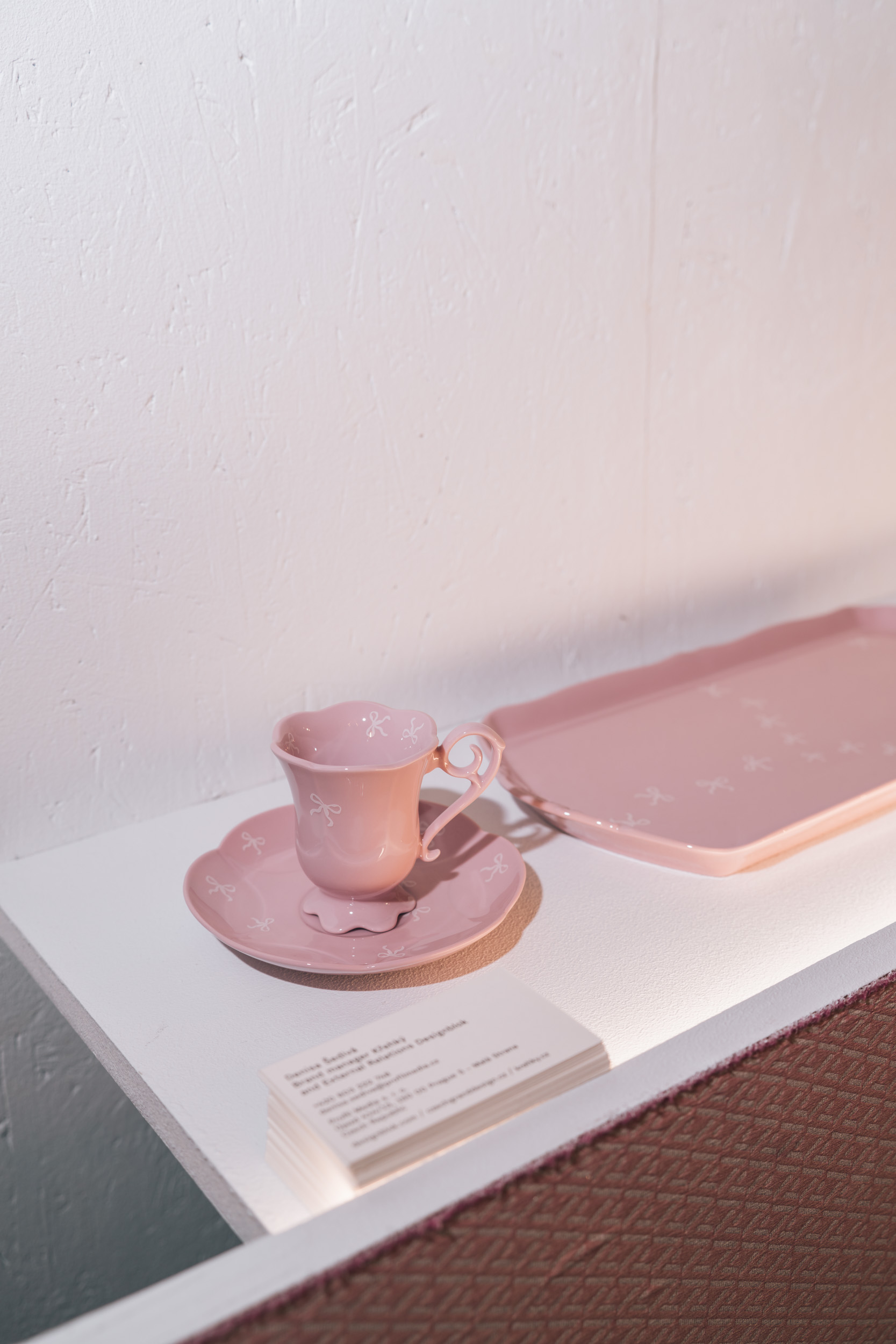 Šálek na espresso z nové řady Dolores,  která vznikla ve spolupráci značky Křehký s designérkou Lindou Pro a Značkou Leander 1907, poslední českou porcelánkou, která růžový porcelán (růžový i ve střepu) vyrábí. Představeno na Designbloku 2025.