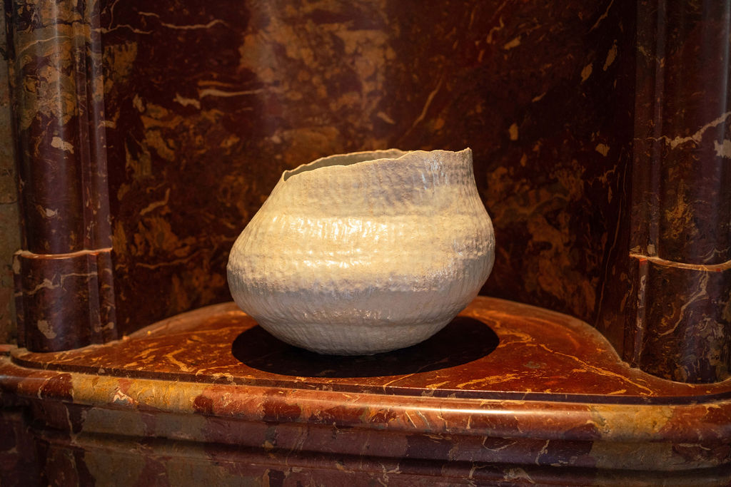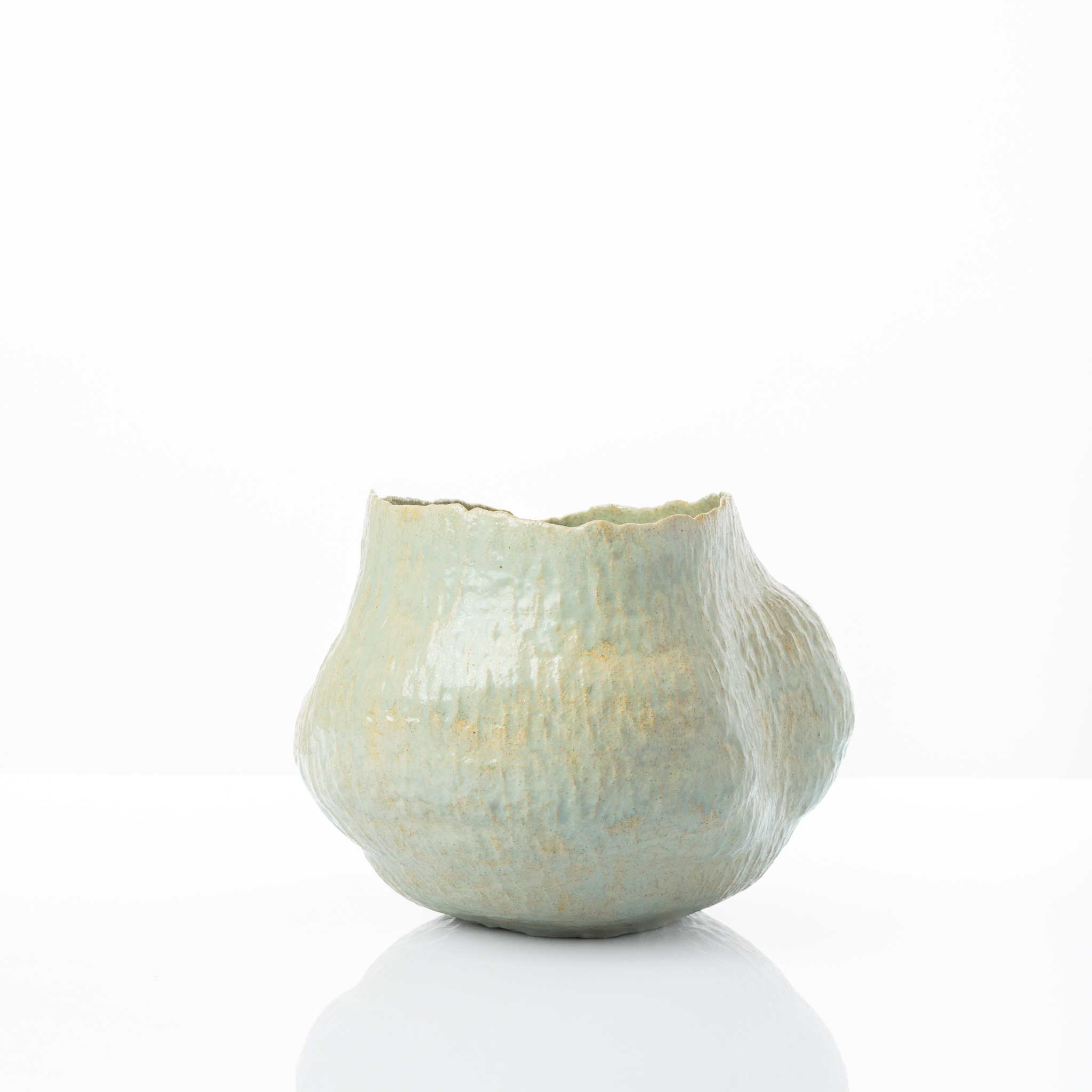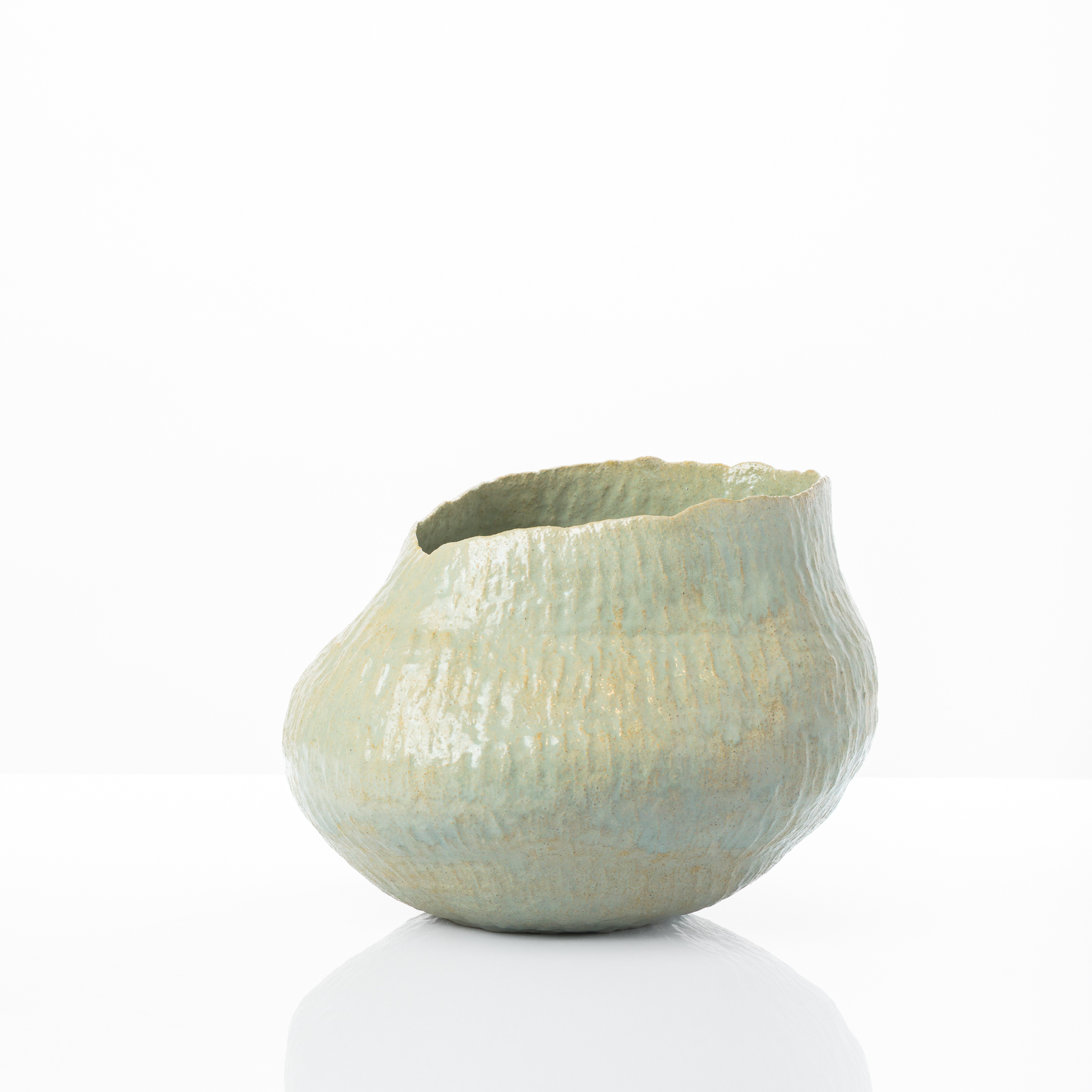 Limitovaná řada šesti ručně modelovaných nádob pro Křehký „V bledě modré“ z kameninových materiálů s perleťovou glazurou v ikonické barvě seladon, každá jedinečná ve své velikosti a tvaru. Umělkyně Eva Pelechová do nich otiskla svůj dotek, vázy trpělivě tvaruje a zvedá, až na samotnou hranici tenkosti. Dotyk za dotekem. Krok za krokem. Nádech za nádechem.